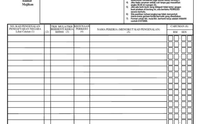 (1) bayaran caruman pada setiap keping cek/kiriman wang/deraf bank hendaklah sama dengan jumlah besar di borang 8a bagi setiap bulan carum. Perkeso borang 8a format baru download excel; Sila fotostat borang 8a untuk rekod tuan. Pp/ptj perlu mengisi borang 8a bagi bayaran tunggakan perkeso tersebut mengikut bulan dan borang tersebut hendaklah dihantar ke cawangan perkeso yang berdekatan. Pertubuhan keselamatan sosial, menara perkeso.