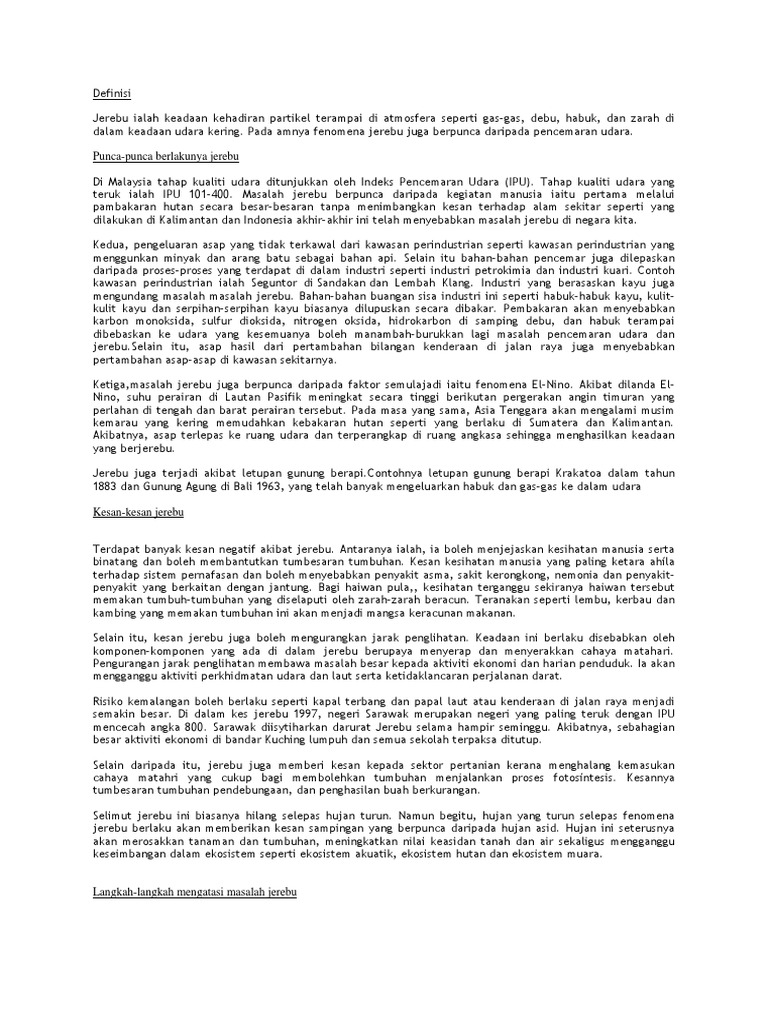 Sep 08, 2009 · masalah jerebu telah menjadi duri dalam daging kepada malaysia. Langkah mengatasi masalah jerebu di malaysia. Sejak akhir x2 ini , nagara kita kerap dilanda jerebu. Serombong asap hendaklah ditinggikan 30 meter melepasi lapisan atmosfera bumi. Apr 20, 2016 · tajuk: